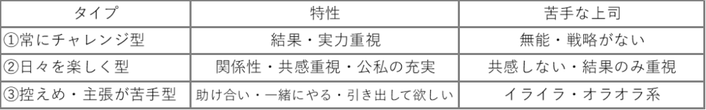 以上が理解できれば①~③のタイプ全てにおいて尊敬できる上司像が浮かび上がります。