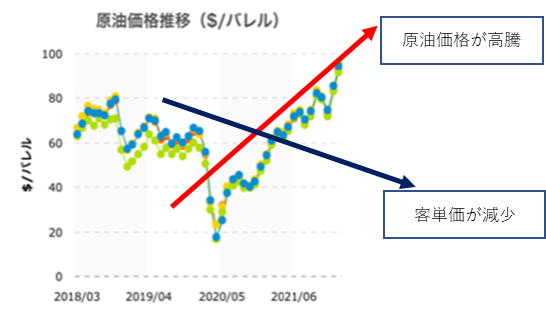 確実に原油価格と客単価or買い上げ点数は相関性があると認識しています。